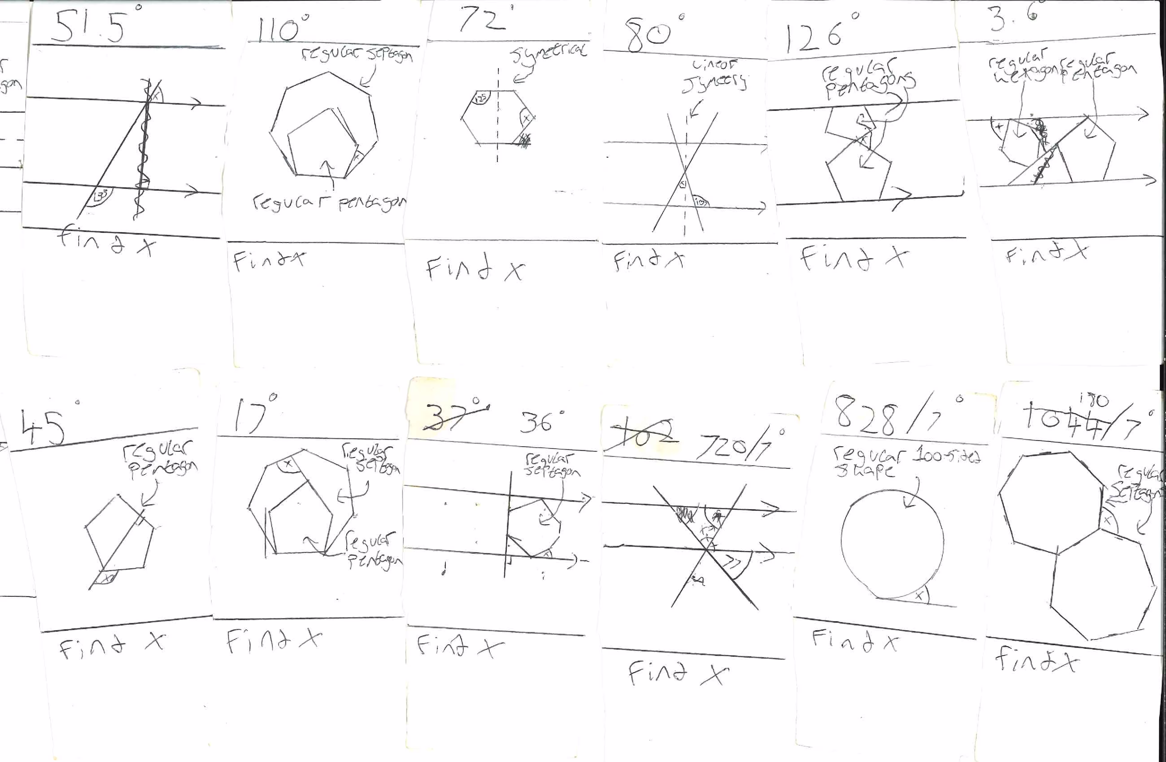 The next section was found on irregularly shaped cards, scanned together in one page for convenience, and may be working for geometry problems, purely by author A.